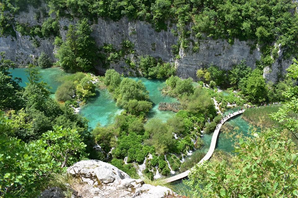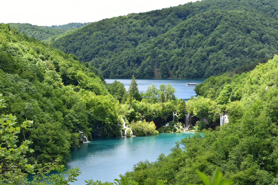 What is Plitvice National Park? It’s a park that is on the UNESCO World Heritage List and consists of sixteen lakes that are separated between an upper and lower region, with waterfalls in between the two. The waters at the lakes vary between blue and green depending on the cloud cover and time of day.